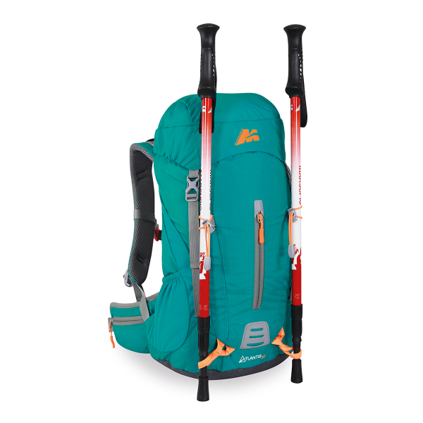 Thanks to the new compact and essential design, it is the ideal rucksack for trekking. It incorporates the ComfortZone MESH SYSTEM with shaped padded and adjustable shoulder straps, cushioned lumbar with small external pockets and chest strap with emergency whistle. Equipped with a practical accessory pocket on the hood, frontal pocket with vertical zip and two side water-bottle pockets. It features side compression straps and trekking pole holders. Hydration system compatible, equipped with pull-out raincover in the base.