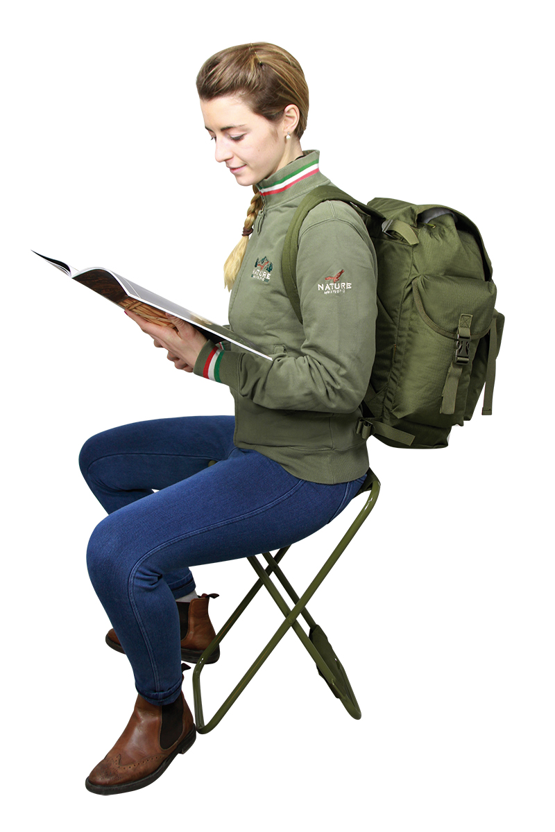 The chair has a wide seat place and can be completely removed with a padded lombar band. The backpack has an ample main compartment, 3 external pockets and adjustable padded shoulder straps.