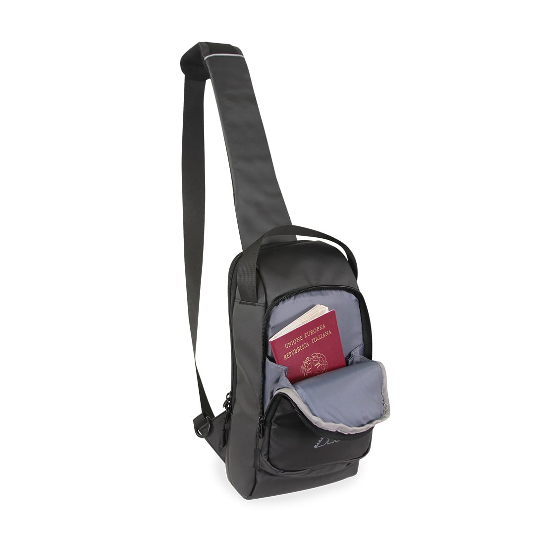 Comfortable shoulderbag ideal for left and right-handed people. Is equipped with frontal carring handle, double frontal pocket and organizer pockets inside. On the back it has an handy secure pocket with vertical opening. Reflective insert on the padded shoulder strap.