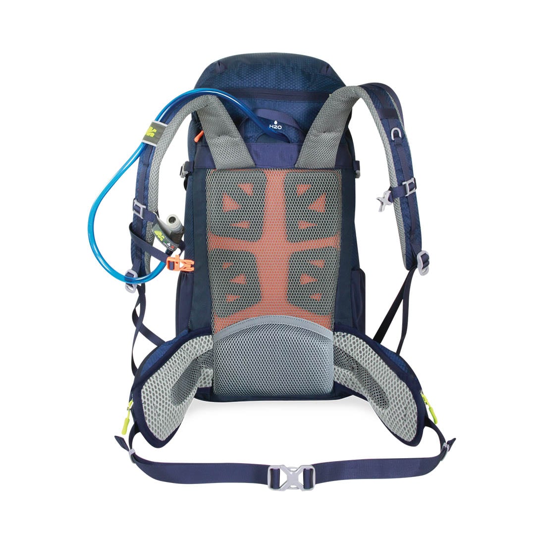 Gli spallacci imbottiti, sagomati e regolabili assicurano una vestibilità ergonomica, mentre il cinturino pettorale regolabile con fibbia dotata di fischietto di emergenza e la cinghia a vita regolabile con cuscini lombari imbottiti e traspiranti, offrono stabilità e comfort.